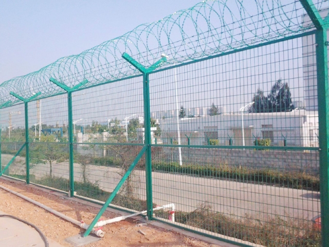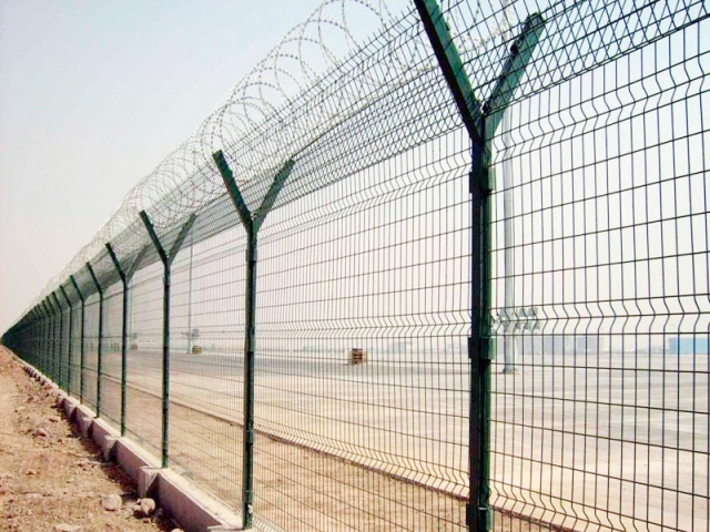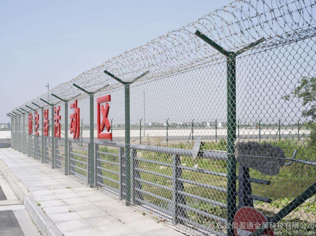 機(jī)場圍界就是應(yīng)用于機(jī)場跑道兩側(cè)的隔離網(wǎng),作用是防止行人誤入跑道,影響飛機(jī)正常運行的有效措施。這個機(jī)場圍界也分為機(jī)場內(nèi)隔離與機(jī)場外隔離,機(jī)場內(nèi)隔離的要求更高,頂部設(shè)置刀刺網(wǎng),外隔離就比較簡單一些,主要還是防止閑雜或者違法人員進(jìn)入飛行禁區(qū),盡管這雙重保護(hù)之下,還是會有人進(jìn)行每天巡邏,以防止個別情況發(fā)生。機(jī)場圍界廣泛應(yīng)用于各大飛機(jī)場的邊界,用作邊界圍欄防護(hù)網(wǎng),還可以用于港口圍界防護(hù)、碼頭鋼絲防護(hù)網(wǎng)、飛機(jī)場防護(hù)護(hù)欄網(wǎng)、Y型安全防御護(hù)網(wǎng),也可以用于公園、動物園、賓館酒店、市政道路等領(lǐng)地周邊的安全防護(hù)圍網(wǎng)。